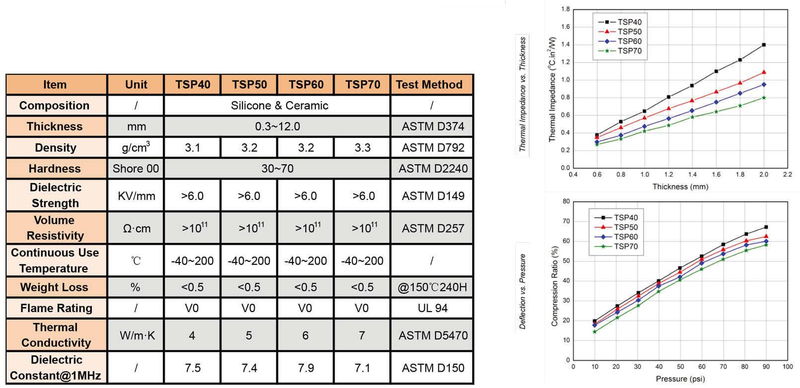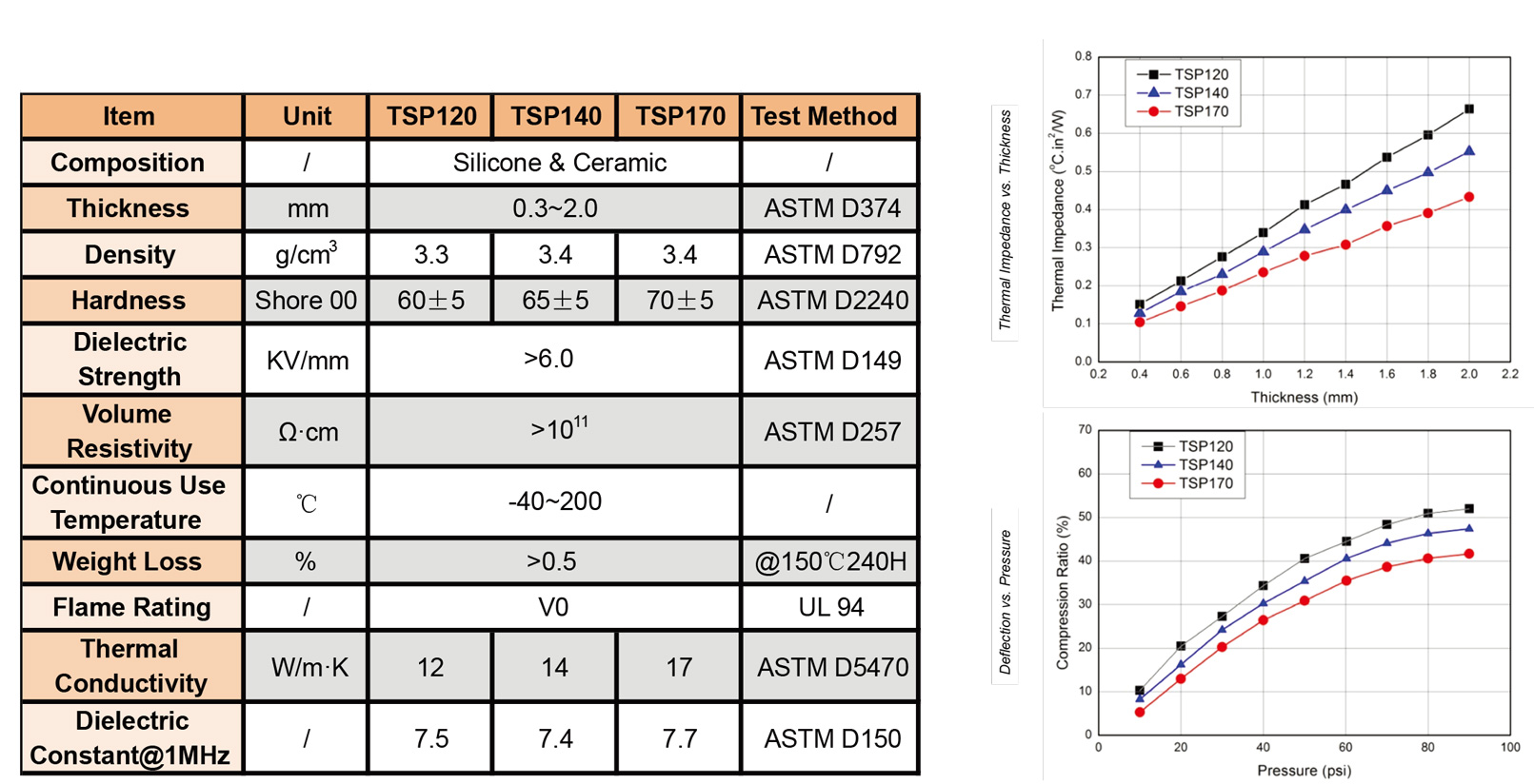 TM TSP系列硅膠導(dǎo)熱墊是一種經(jīng)濟(jì)高效的導(dǎo)熱解決方案,具有低壓縮力、低熱阻、超軟性能和高適應(yīng)性。用于填充電子元件和散熱器之間的空氣間隙。具有高壓縮性、粘性表面、柔軟性和靈活性。在熱導(dǎo)率方面有一系列產(chǎn)品可供選擇,從1.5W/m.k到17W/m.k。" />