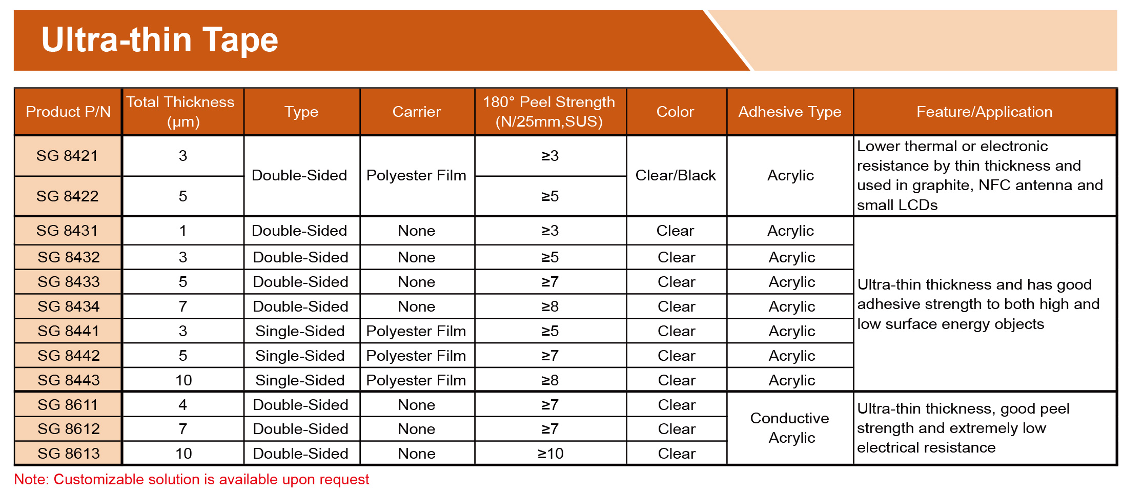 提供各種膠帶,由PET、無紡布、泡沫、涂有丙烯酸、硅樹脂、橡膠、熱熔、熱轉化粘合劑的PI基材制成。可提供各種寬度、長度和釋放襯墊,以滿足特定需求,專為工業(yè)、商業(yè)和家庭應用的特殊環(huán)境而設計。