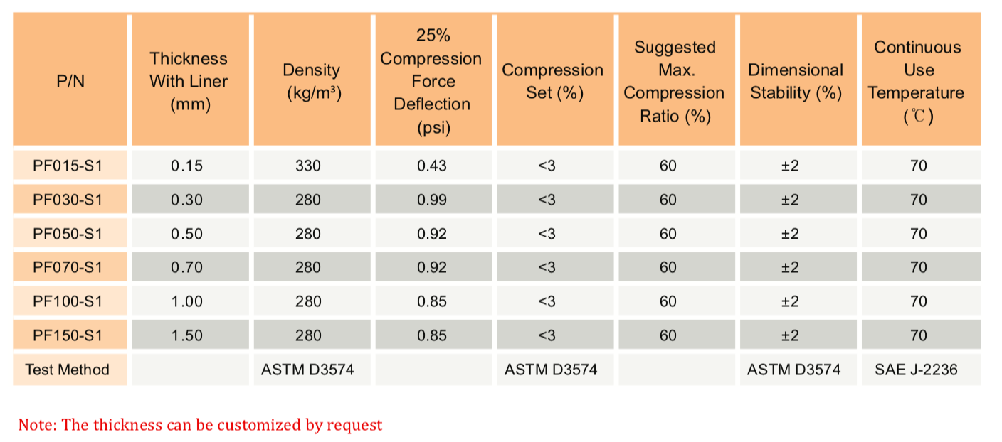 TMPF-S1 系列是一種超柔軟、緩慢回彈的泡棉,用于電子設備的緩沖、保護性密封和長期間隙填充??梢赃_到60%的壓縮比。S1系列泡棉具有極低的壓縮永久變形、高密封性能和優(yōu)異的沖擊吸收性能。" />